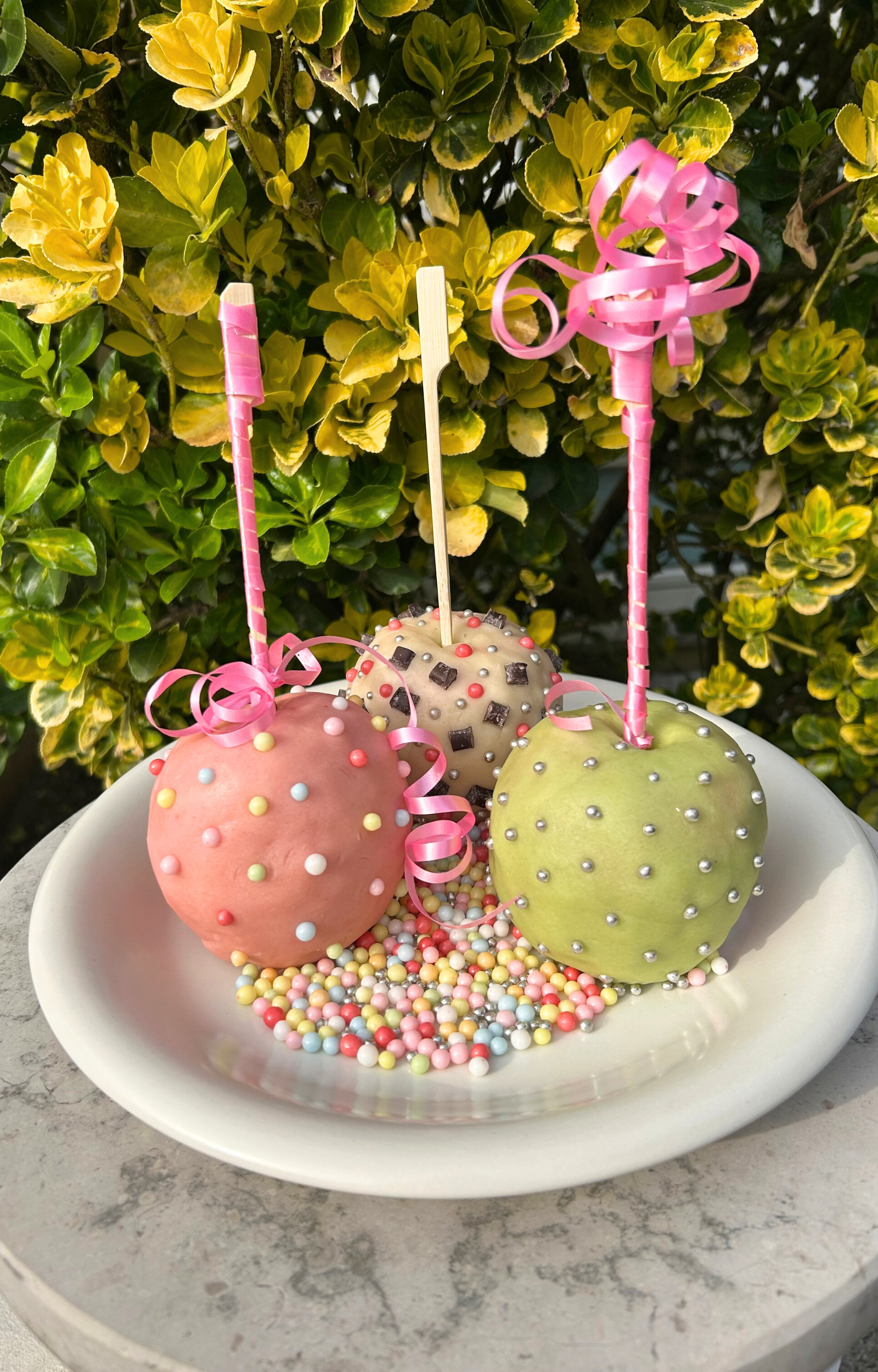 - Lava la mela Pink Lady® e ricoprila completamente con pasta di mandorle del colore che preferisci.