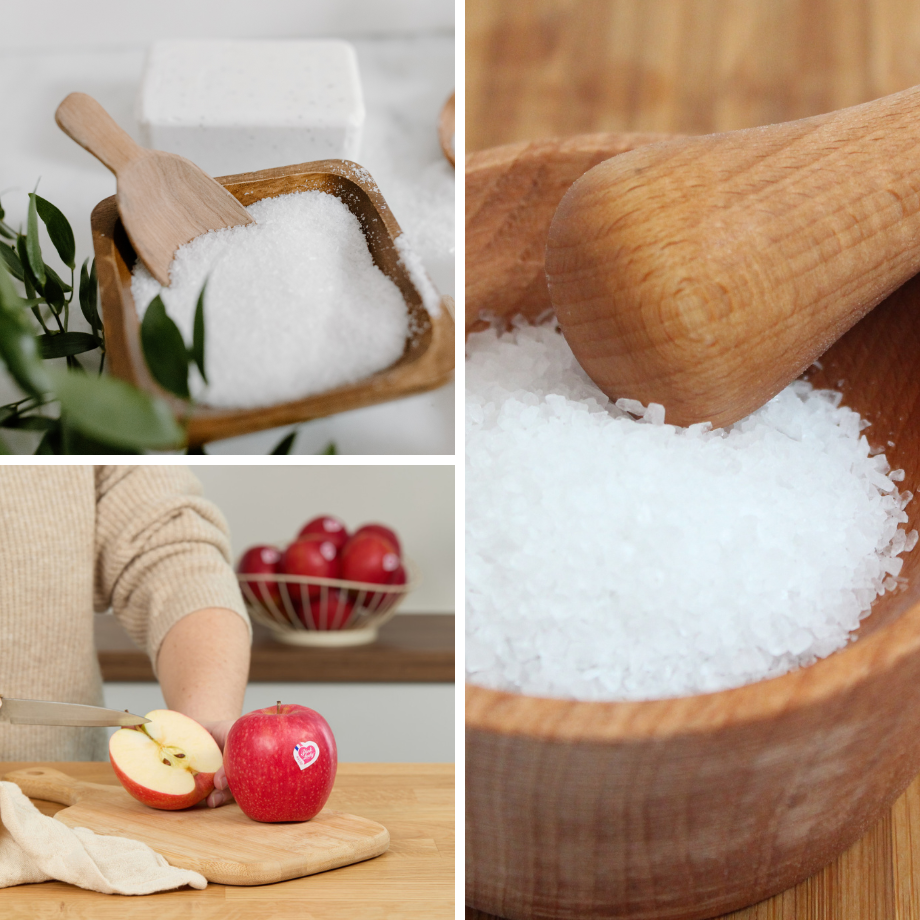💡Astuce n°2 : Créez votre propre solution saline. Le sel limite la réaction enzymatique tout en étant facile à rincer.