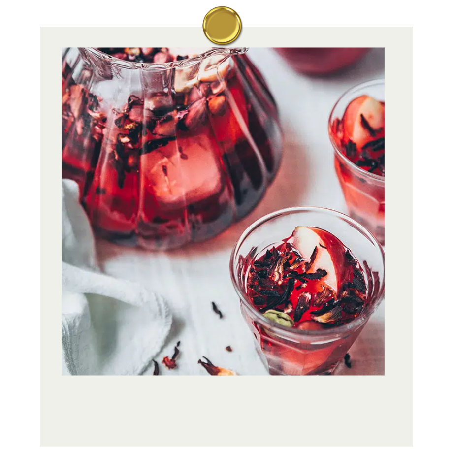Pour terminer ce panier gourmand sur une note légère et rafraîchissante, rien de tel qu’une eau détox à base de pomme Pink Lady® et de fleurs d’hibiscus !