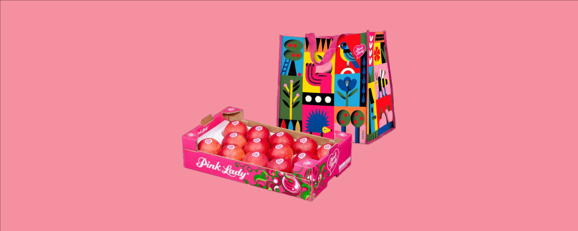 Ga tussen 6 en 12 mei 2024 naar je plaatselijke Boon’s Markt om de gloednieuwe shopper van Pink Lady® te bemachtigen, gemaakt in samenwerking met kunstenaarsduo ZEBU!