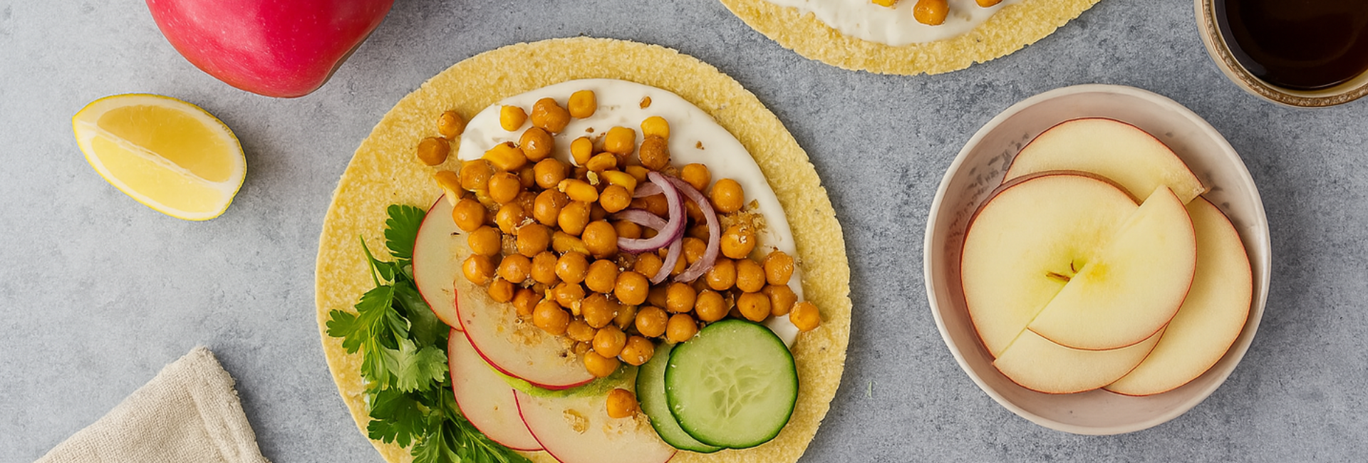 Tra mele Pink Lady® croccanti, mais, spezie, lime e tortillas morbide, tutti gli ingredienti sono riuniti per un’esplosione di sapori e un invito al viaggio. Da gustare in tutta semplicità, per un pranzo leggero o una cena vegetariana festosa.