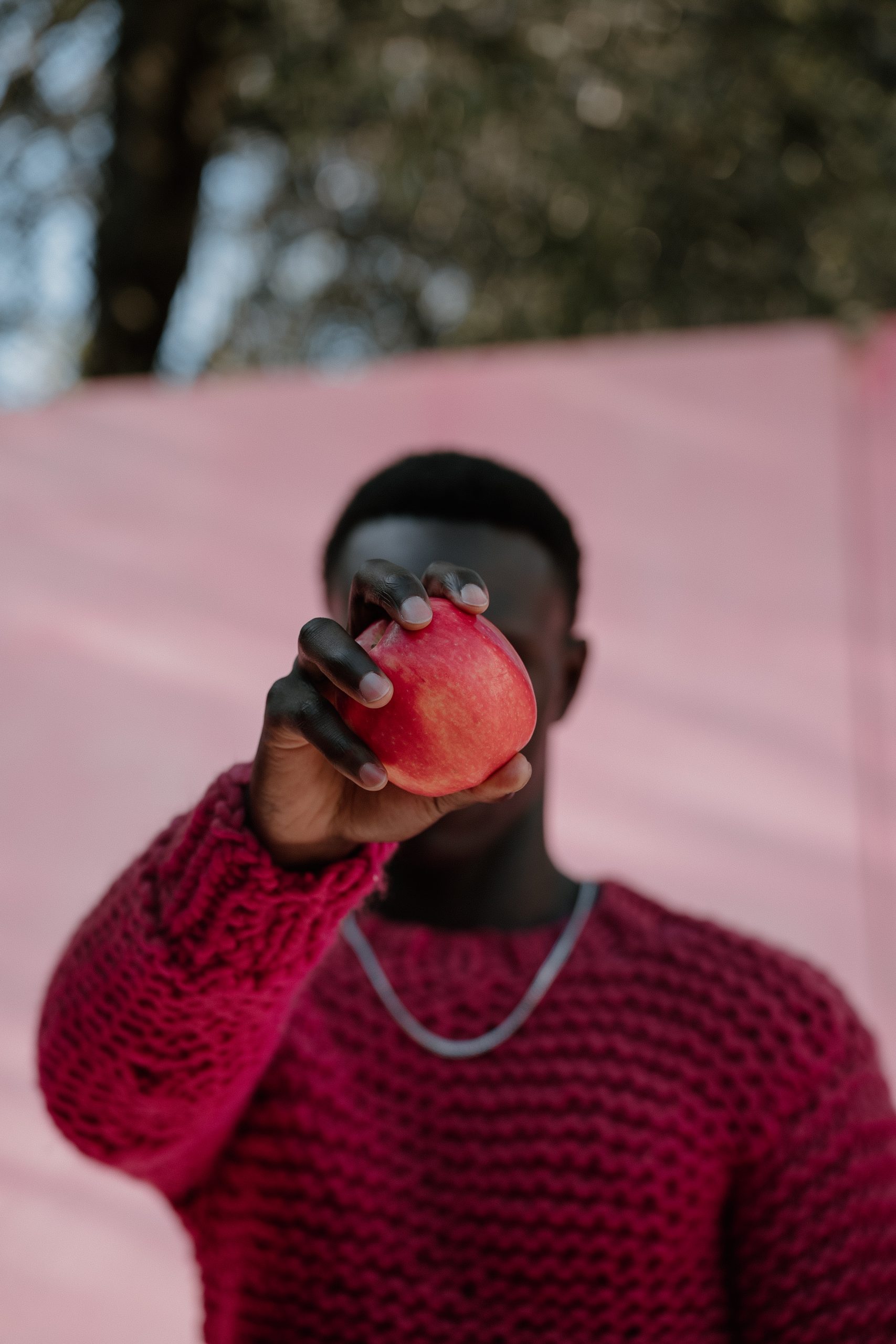 La mela esce dal suo registro abituale: diventa un simbolo di gioia, un’icona pop che incarna un’attitudine moderna, positiva e sicura di sé.