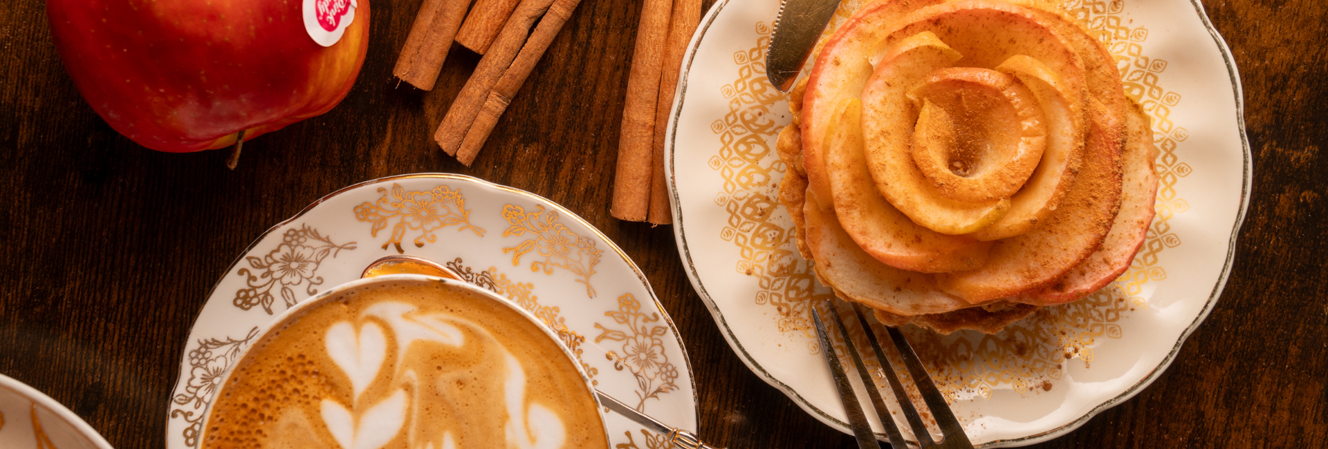Además de por sus cafés excepcionales, el Kaldi Café cautiva también por la calidad de su repostería artesana, que incluye opciones sin gluten para deleitar a todos los paladares. Aunque la estrella indiscutible de su carta es la tarta de queso, que elaboran en varias versiones, el local ha reimaginado una tarta de manzana Pink Lady® y canela para la campaña “Meriendas Pink Lady®”. Una receta que realza el equilibrio perfecto entre la dulzura y la acidez de nuestra manzana Pink Lady®, ideal para disfrutar con un café perfectamente tostado.